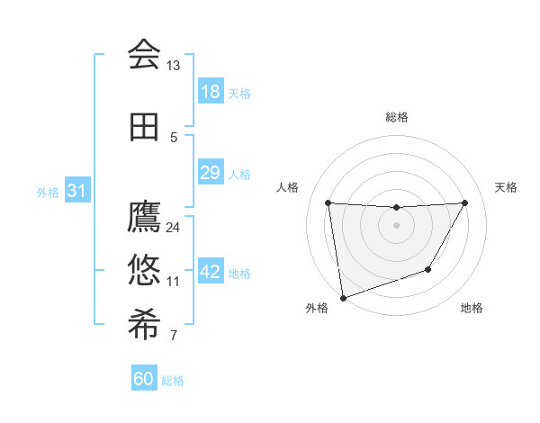 会田 鷹悠希さんの総格は60画の1点!