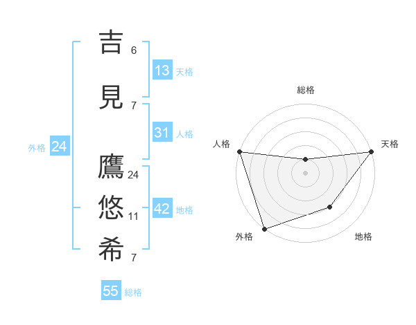 吉見 鷹悠希さんを姓名の画数から五運を鑑定