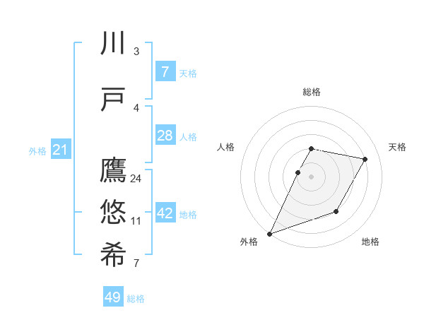 川戸 鷹悠希さんを姓名の画数から五運を鑑定