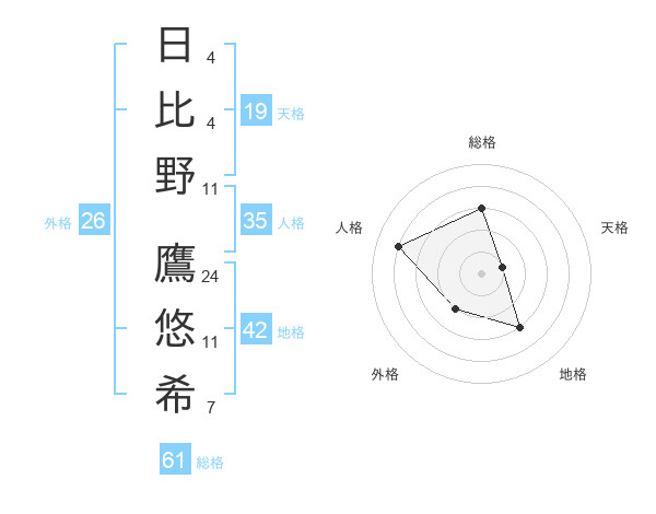日比野 鷹悠希さんの総格は61画の3点!