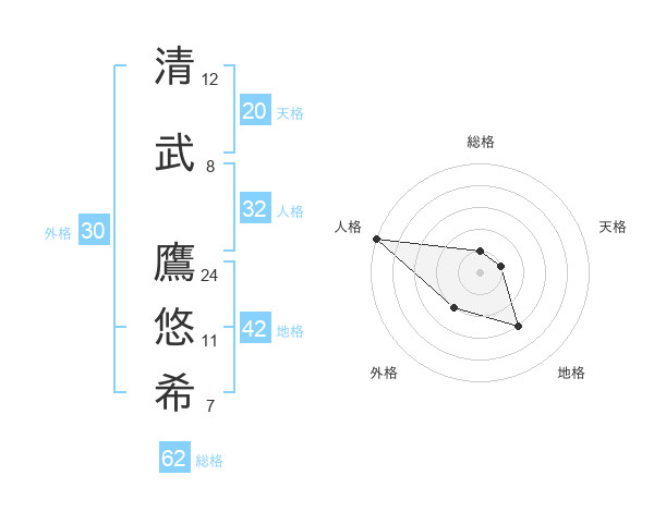 清武 鷹悠希さんを姓名の画数から五運を鑑定