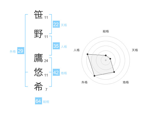 笹野 鷹悠希さんを姓名の画数から五運を鑑定