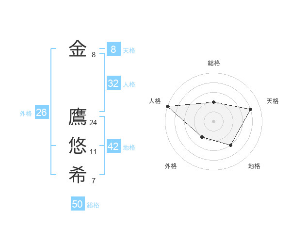 金 鷹悠希さんの総格は50画の2点!