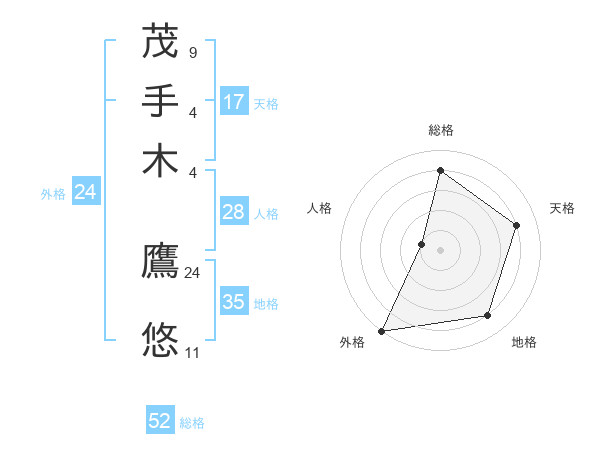 茂手木 鷹悠さんを姓名の画数から五運を鑑定