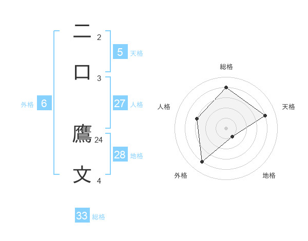 二口 鷹文さんを姓名の画数から五運を鑑定