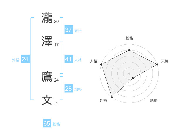 瀧澤 鷹文さんを姓名の画数から五運を鑑定