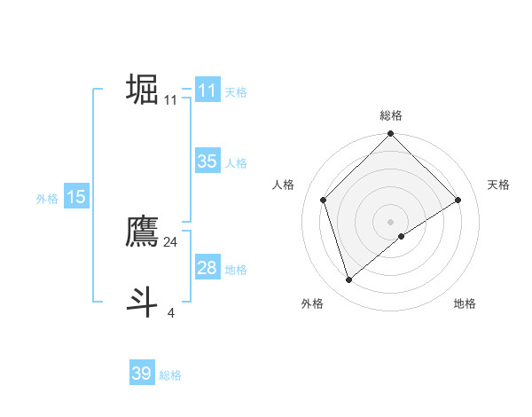 堀 鷹斗さんを姓名の画数から五運を鑑定