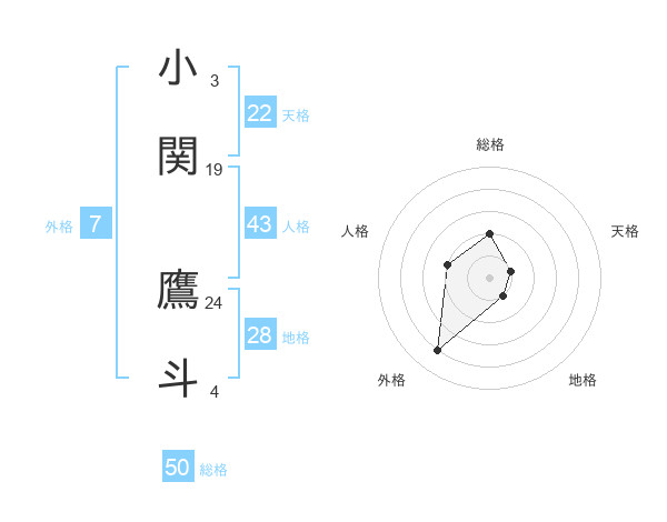小関 鷹斗さんを姓名の画数から五運を鑑定