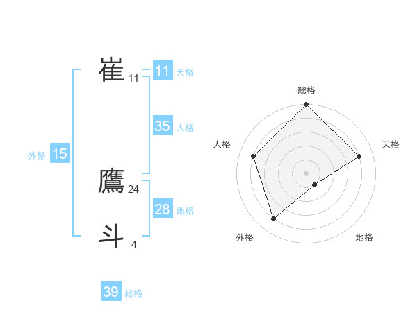 崔 鷹斗さんの総格は39画の5点!