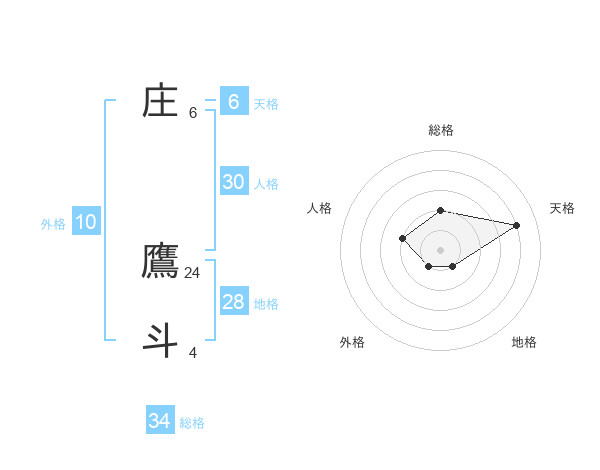 庄 鷹斗さんの総格は34画の2点!
