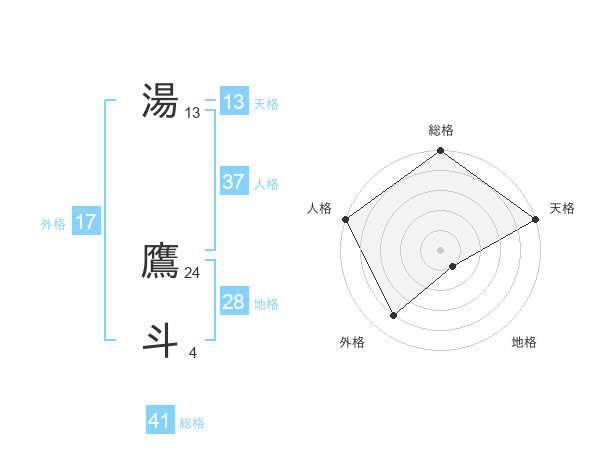 湯 鷹斗さんを姓名の画数から五運を鑑定