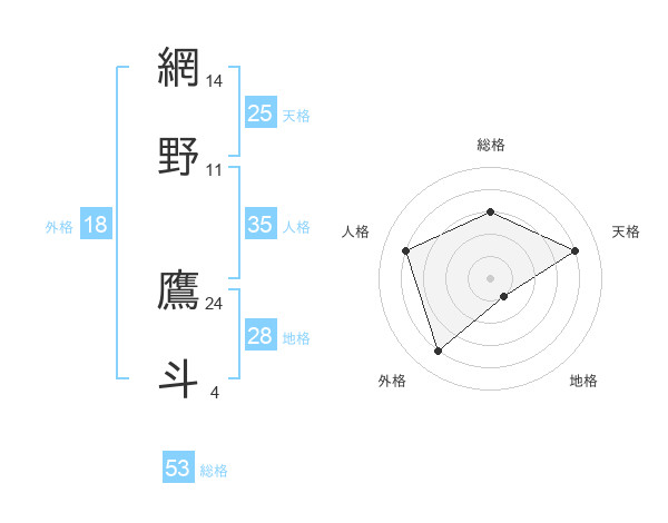 網野 鷹斗さんを姓名の画数から五運を鑑定