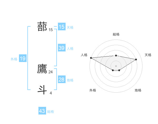 蔀 鷹斗さんの外格は19画の1点!