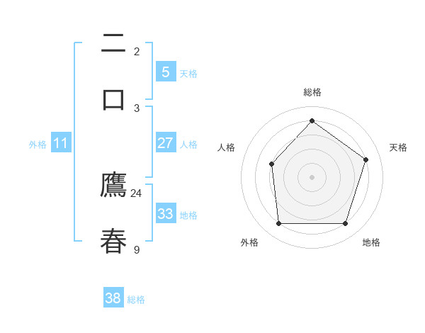 二口 鷹春さんを姓名の画数から五運を鑑定
