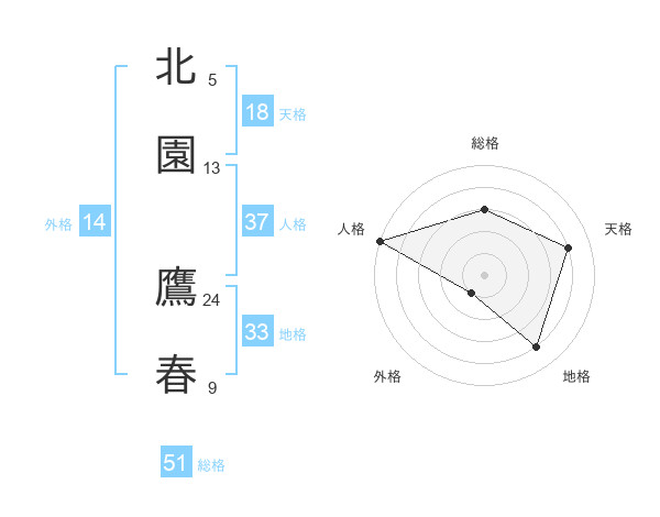 北園 鷹春さんの総格は51画の3点!