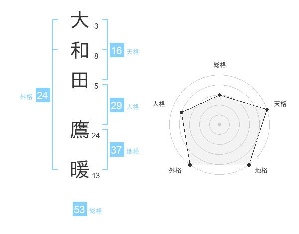 大和田 鷹暖さんを姓名の画数から五運を鑑定