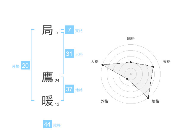 局 鷹暖さんの総格は44画の2点!