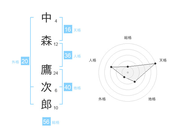 中森 鷹次郎さんの総格は56画の1点!