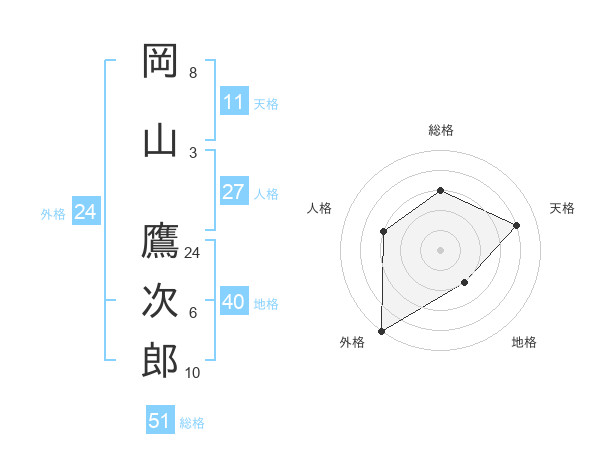 岡山 鷹次郎さんを姓名の画数から五運を鑑定