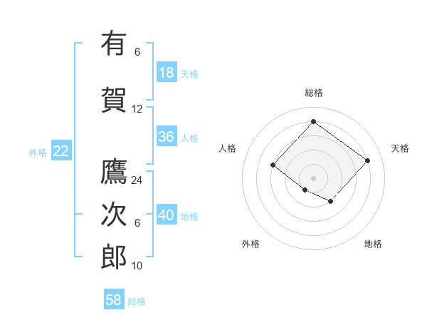 有賀 鷹次郎さんの総格は58画の4点!