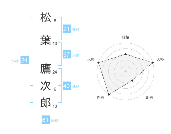 松葉 鷹次郎さんの総格は61画の3点!