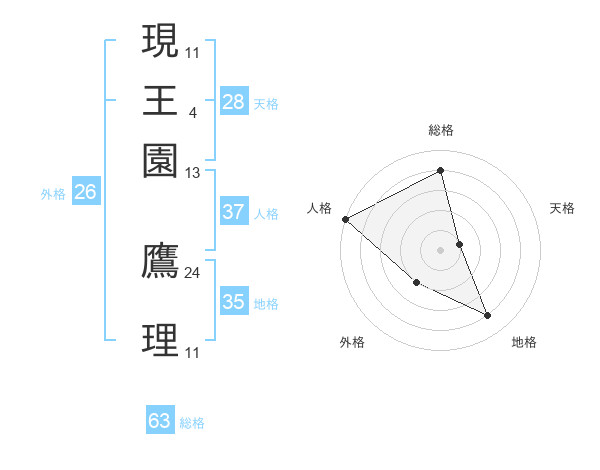 現王園 鷹理さんを姓名の画数から五運を鑑定