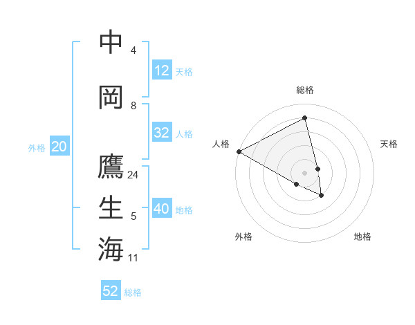 中岡 鷹生海さんを姓名の画数から五運を鑑定