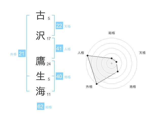 古沢 鷹生海さんを姓名の画数から五運を鑑定