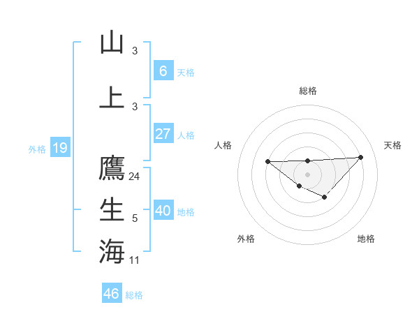 山上 鷹生海さんを姓名の画数から五運を鑑定
