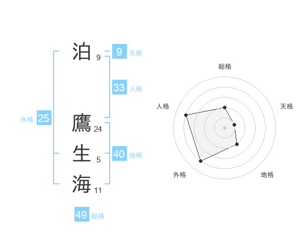 泊 鷹生海さんを姓名の画数から五運を鑑定