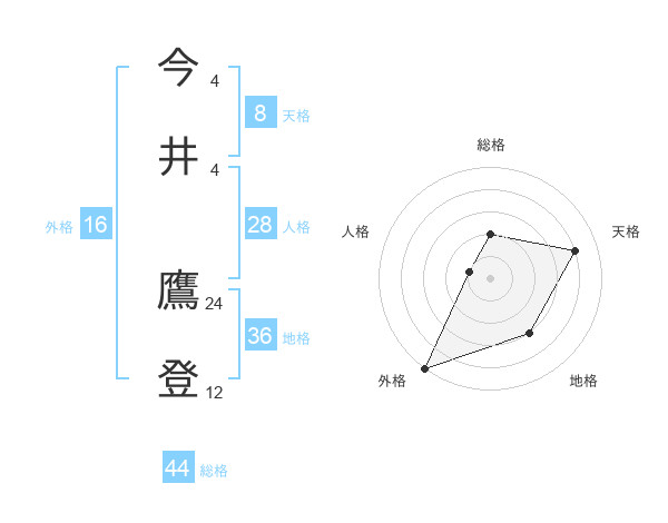 今井 鷹登さんを姓名の画数から五運を鑑定