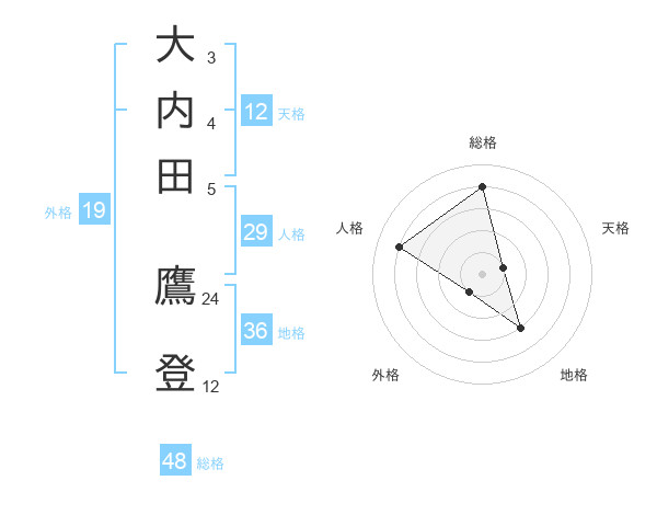 大内田 鷹登さんを姓名の画数から五運を鑑定
