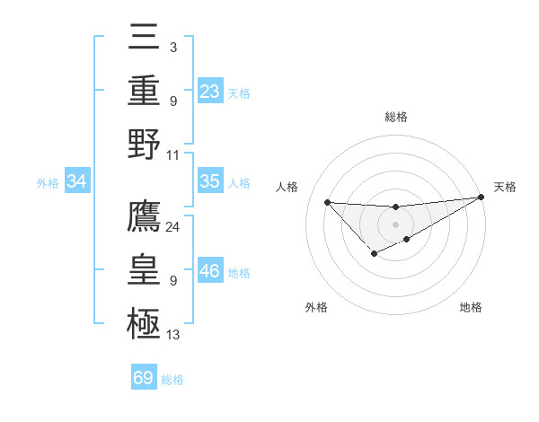 三重野 鷹皇極さんの総格は69画の1点!