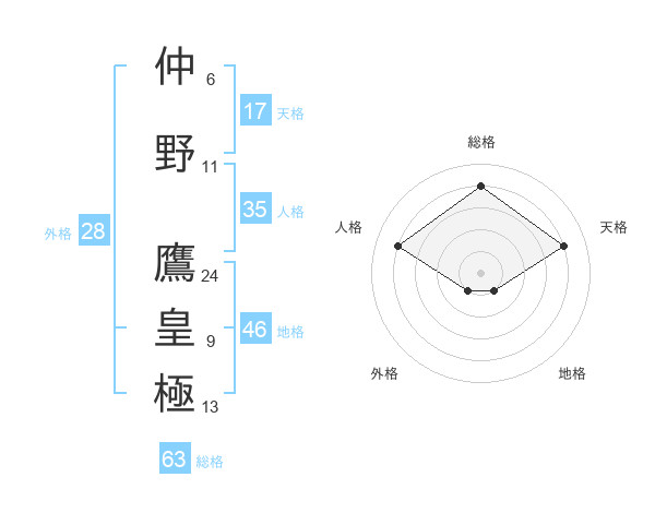 仲野 鷹皇極さんの総格は63画の4点!