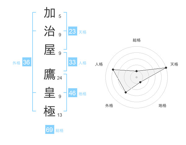 加治屋 鷹皇極さんを姓名の画数から五運を鑑定