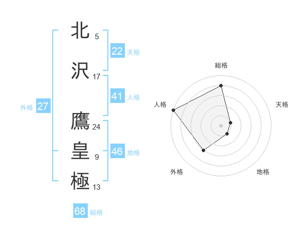 北沢 鷹皇極さんを姓名の画数から五運を鑑定