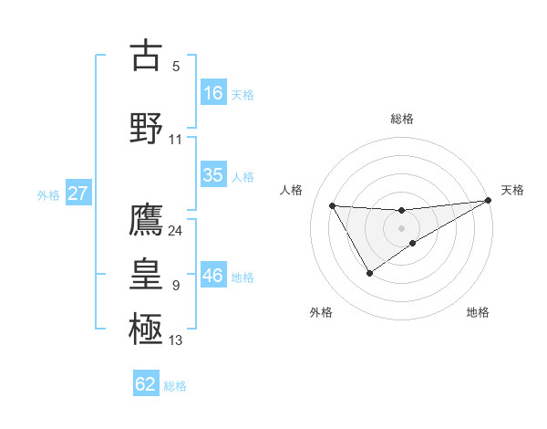 古野 鷹皇極さんの天格は16画の5点