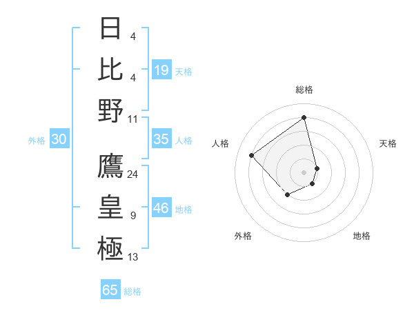 日比野 鷹皇極さんを姓名の画数から五運を鑑定
