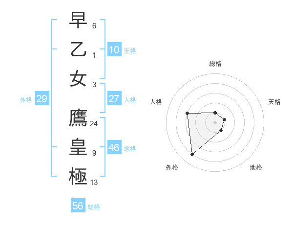 早乙女 鷹皇極さんを姓名の画数から五運を鑑定