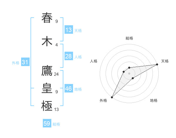 春木 鷹皇極さんの総格は59画の1点!