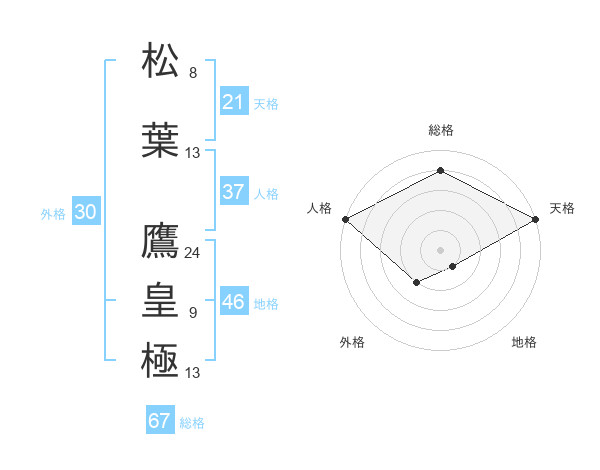 松葉 鷹皇極さんの総格は67画の4点!