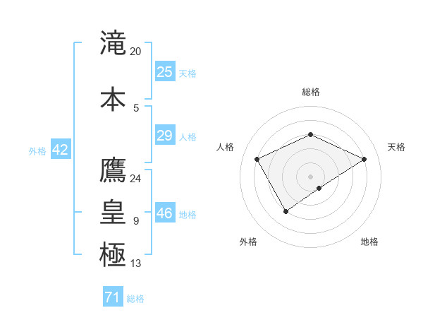 滝本 鷹皇極さんを姓名の画数から五運を鑑定
