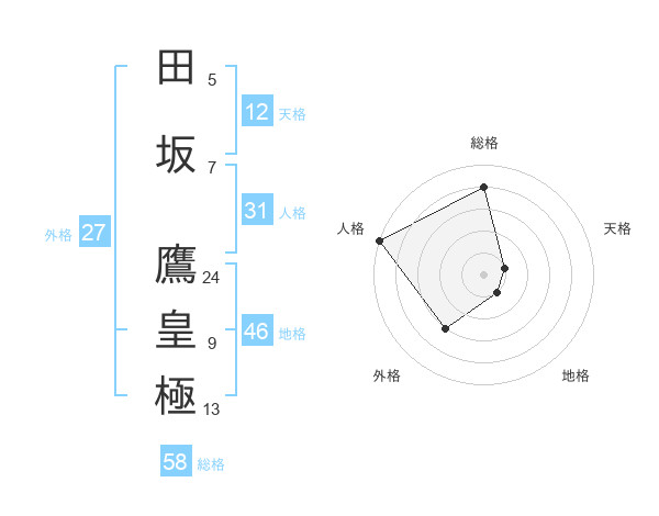 田坂 鷹皇極さんの名前の鑑定結果は!