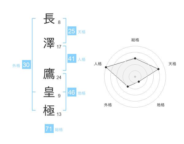 長澤 鷹皇極さんの総格は71画の3点!