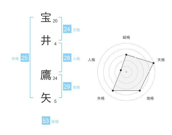 宝井 鷹矢さんの外格は25画の4点!