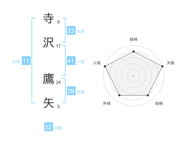寺沢 鷹矢さんの総格は52画の4点!