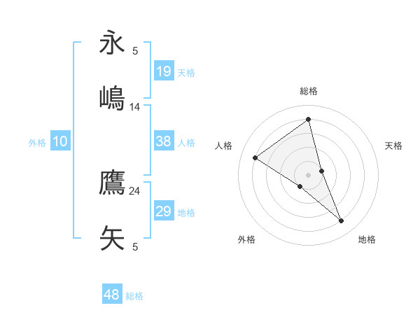 永嶋 鷹矢さんの総格は48画の4点!