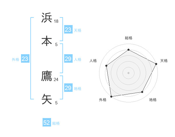 浜本 鷹矢さんを姓名の画数から五運を鑑定