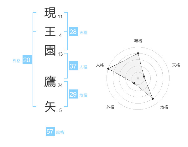 現王園 鷹矢さんを姓名の画数から五運を鑑定