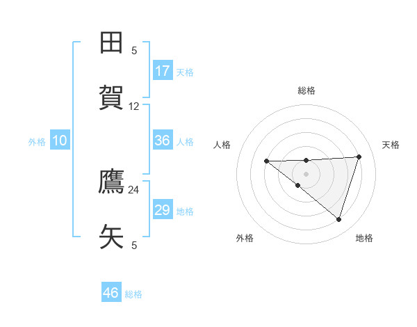 田賀 鷹矢さんの天格は17画の4点!